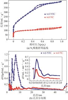 表1 wd-NSC和wd-NC的孔结构参数