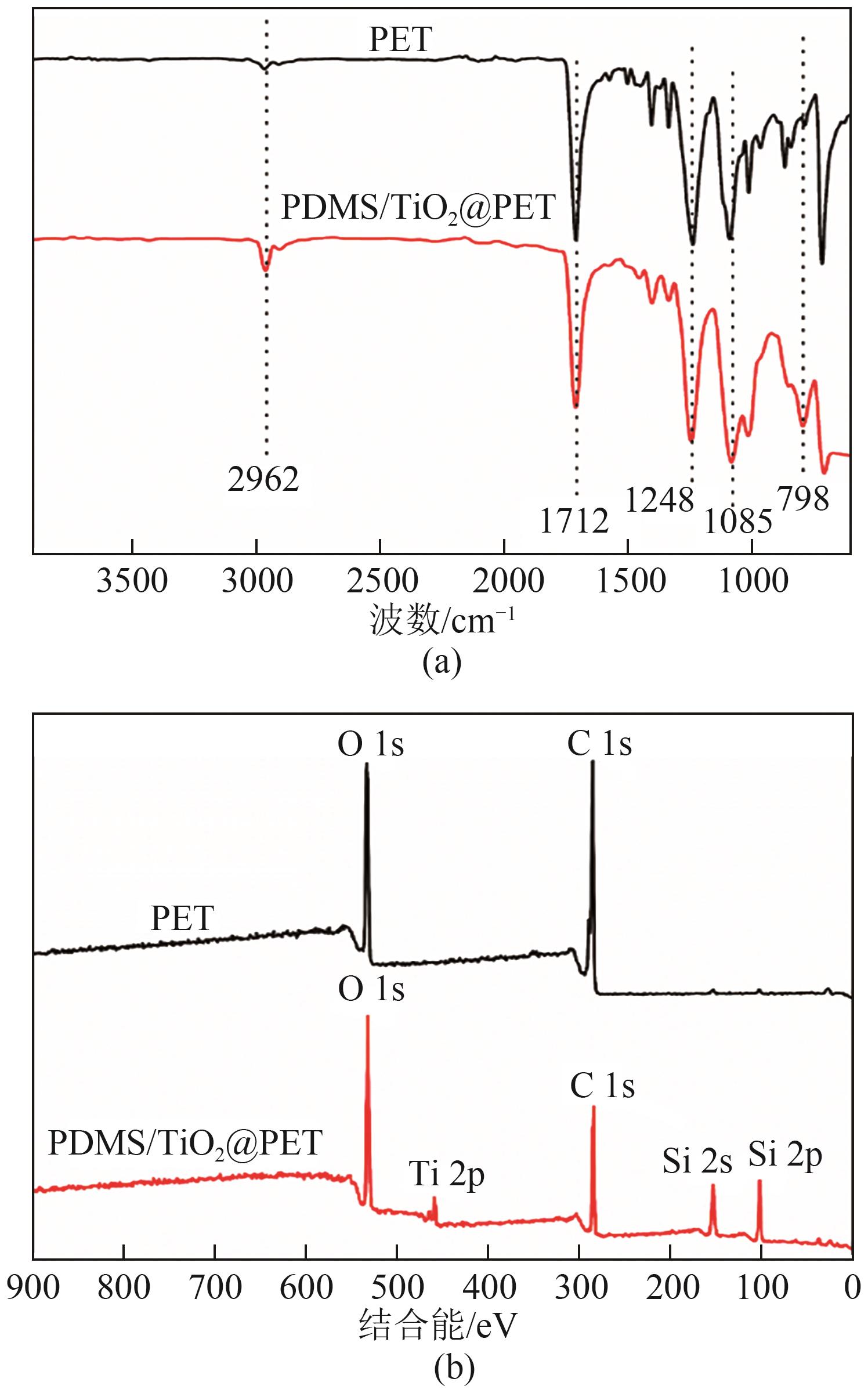 关键词: 聚酯纤维织物, 油水分离, 疏水, 聚二甲基硅氧烷, 纳米二氧化钛