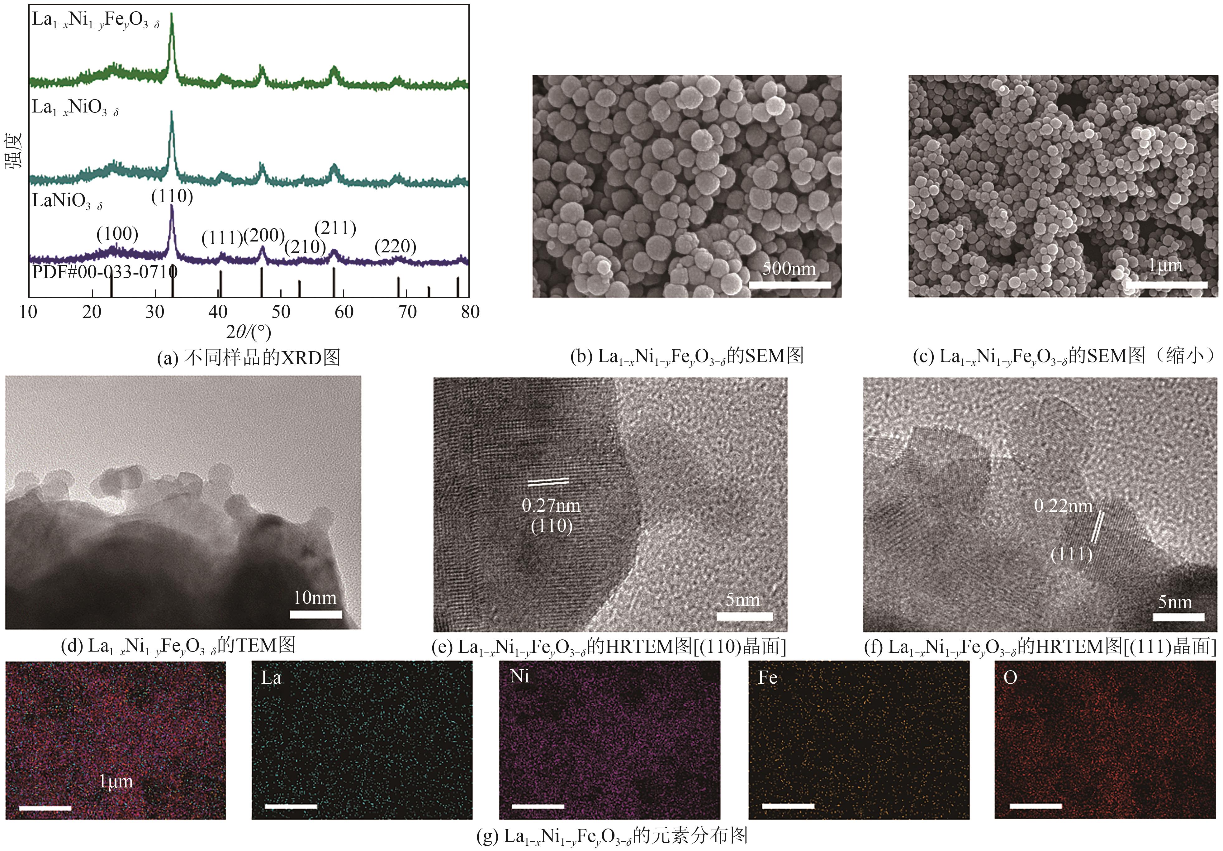 钙钛矿氧化物是非常有潜力的析氧反应(OER)催化剂。然而,通过有效掺杂稳定钙钛矿氧化物中B位元素以实现高催化活性仍然是一大挑战。本文通过在A位引入缺陷,促进了电解液中Fe离子的强吸附,进而在施加电压下实现B位金属的高效掺杂及钙钛矿表面稳定结构的构筑。制备的La1-x Ni1-y Fe y O3‑δ 具有粗糙纳米球形貌,这提供了更大的电化学活性表面积。外部Fe源(FeCl3)具有较小离子半径,更容易实现高效掺杂和结构稳定。A位缺陷的引入和B位Fe掺杂增加了La1-x Ni1-y Fe y O3‑δ 中的氧空位,有利于提升其析氧活性。在10mA/cm2的电流密度下,该催化剂仅需要345mV的过电位,就展示了超过68h的长期稳定性。这种通过A位缺陷工程与B位金属掺杂协同的调控策略,为设计高效碱性OER催化剂提供了新的方法。A位缺陷增强了关键氧中间体的吸附,B位Fe掺杂加强了Ni-O共价性。这种通过A位缺陷工程与B位金属掺杂协同的调控策略,为设计高效的碱性OER催化剂提供了新的方法。