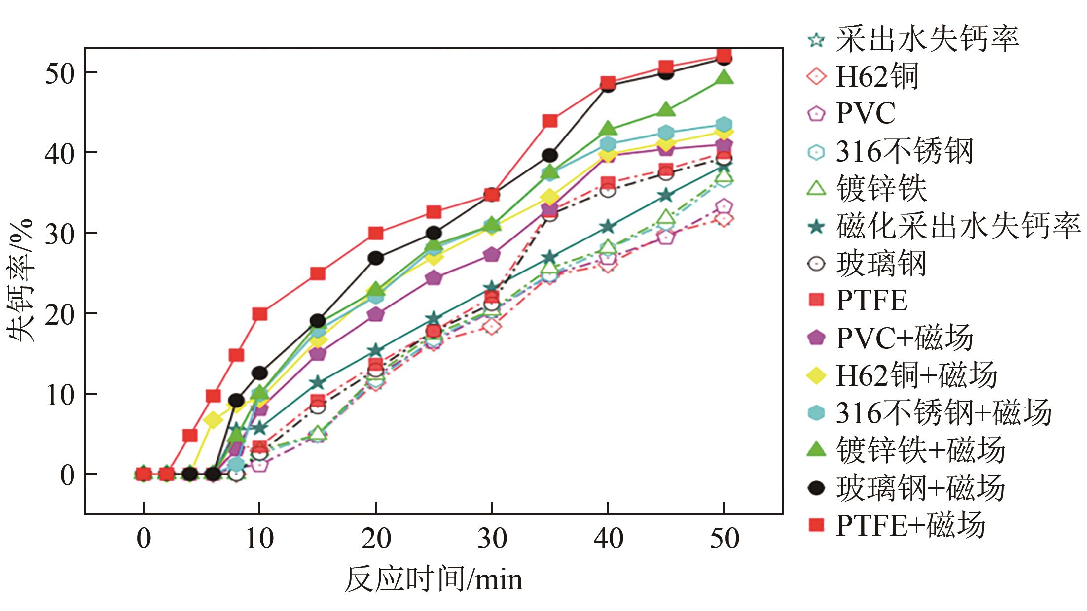 | 镀锌铁+磁场 | 蒸馏水 | 81.13 | 79.85 | 79.15 | 78.59 | 77.20 | 76.16 |