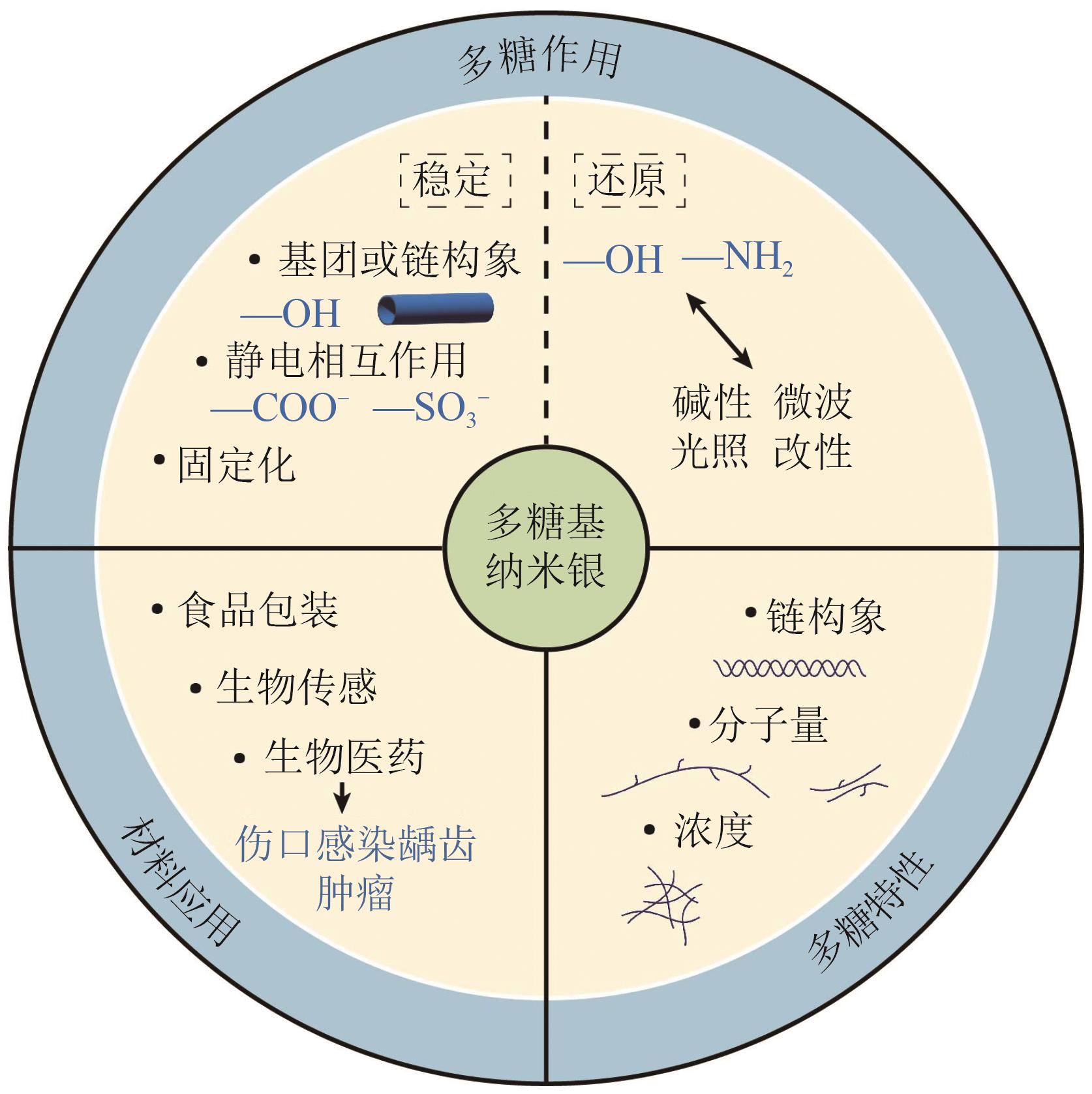 | 多糖链构象 | 保持构象则使纳米银有更好的稳定性和性质 | [ |
