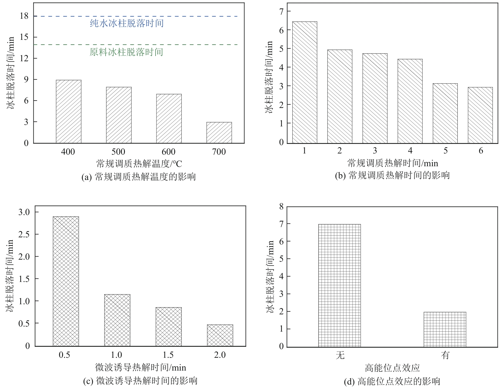 | 编号 | 常规调质热解温度(A)/℃ | 常规调质热解时间(B)/min | 微波协同热解时间(C)/min | 冰柱脱离容器的时间(Sice-off)/min |