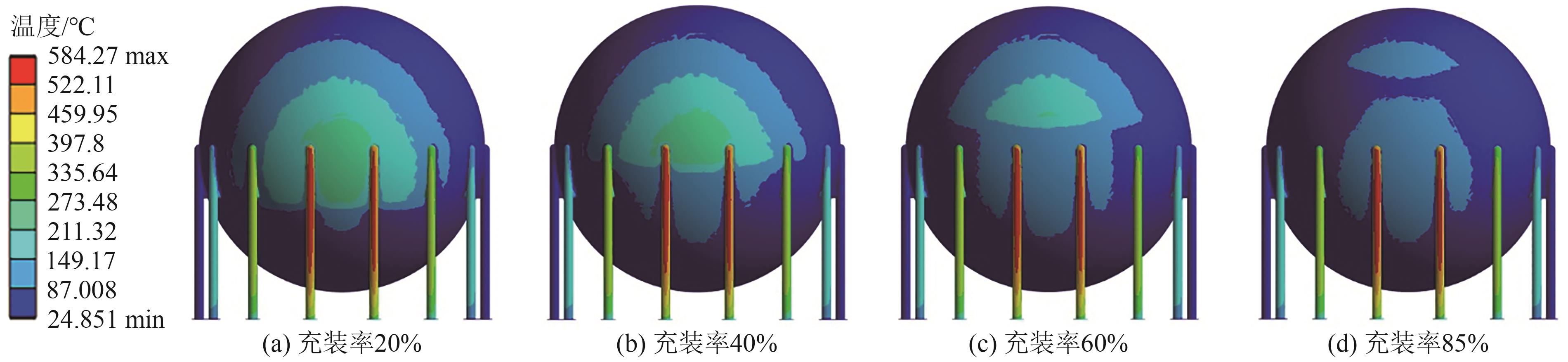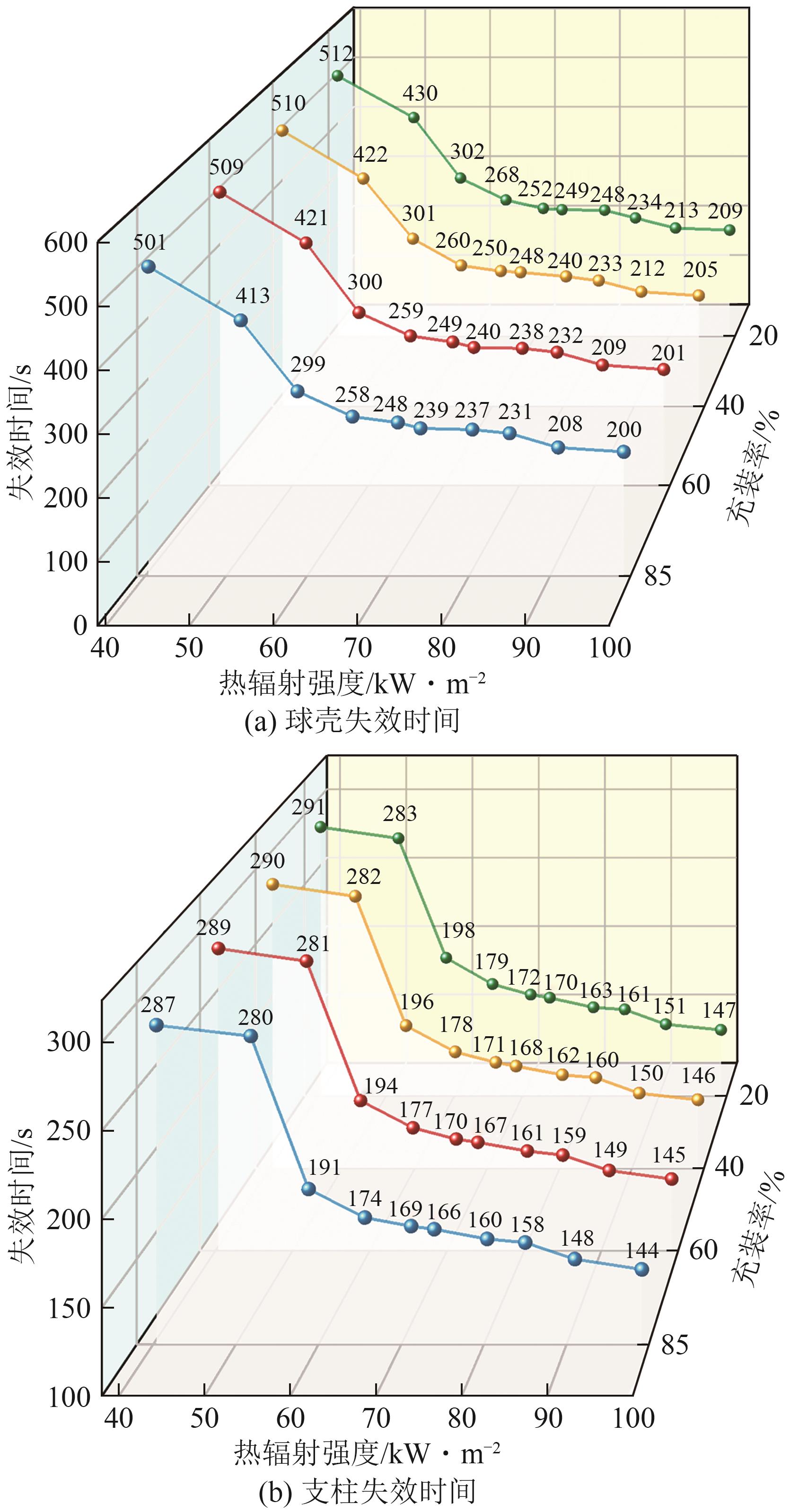 | 工况编号 | 接收最大热辐射强度/kW·m-2 | 充装率/% | 球壳失效时间/s | 支柱失效时间/s |