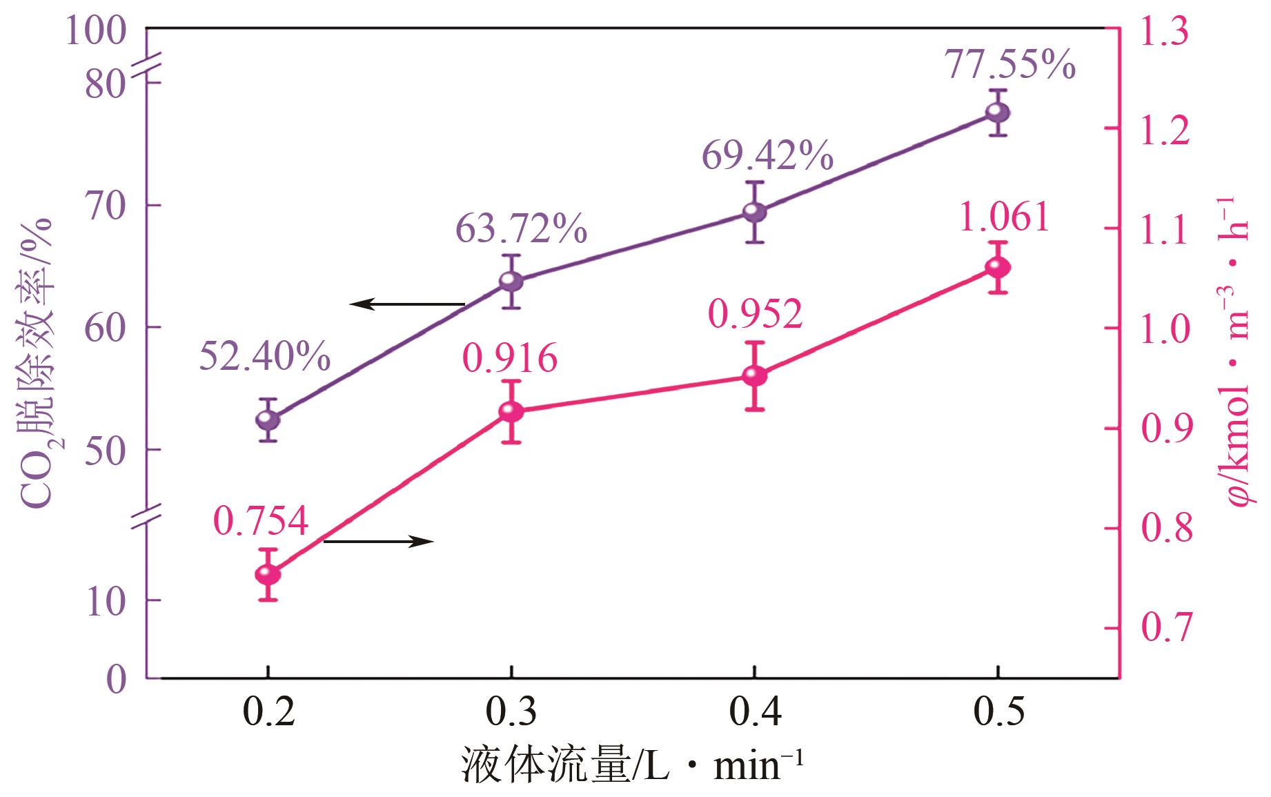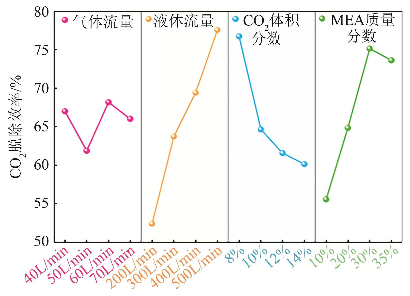 | 各因素显著性排序 | 液体流量-MEA浓度-CO2浓度-气体流量 | |||
