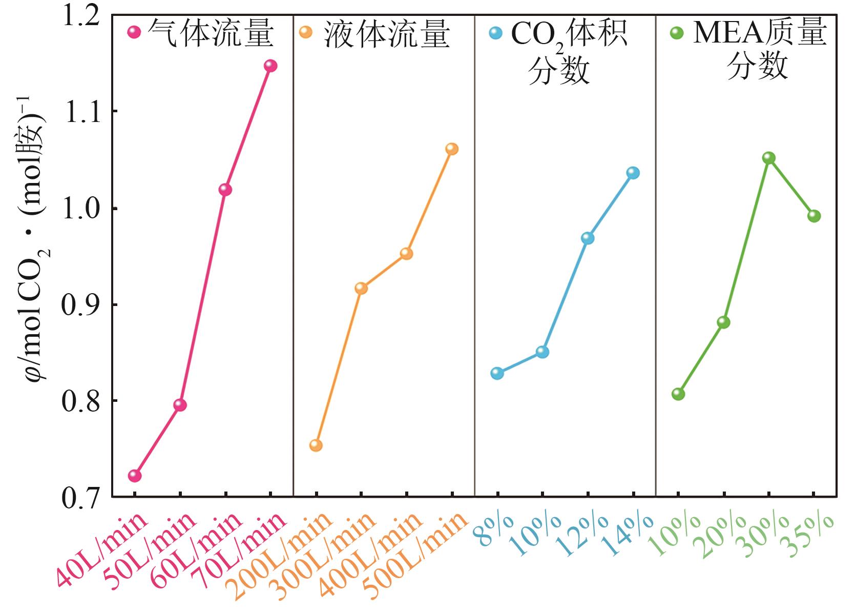 | 各因素显著性排序 | 气体流量-液体流量-MEA浓度-CO2浓度 | |||